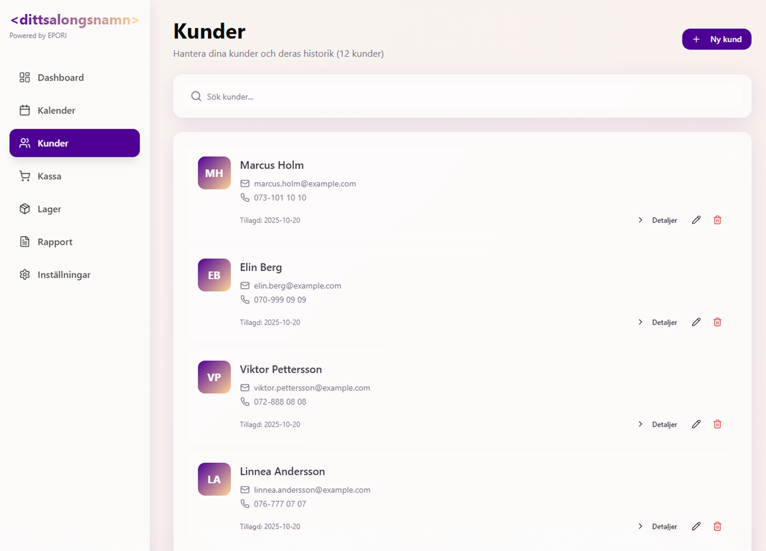 Spara information om dina kunder – från tidigare behandlingar till färgval och anteckningar.